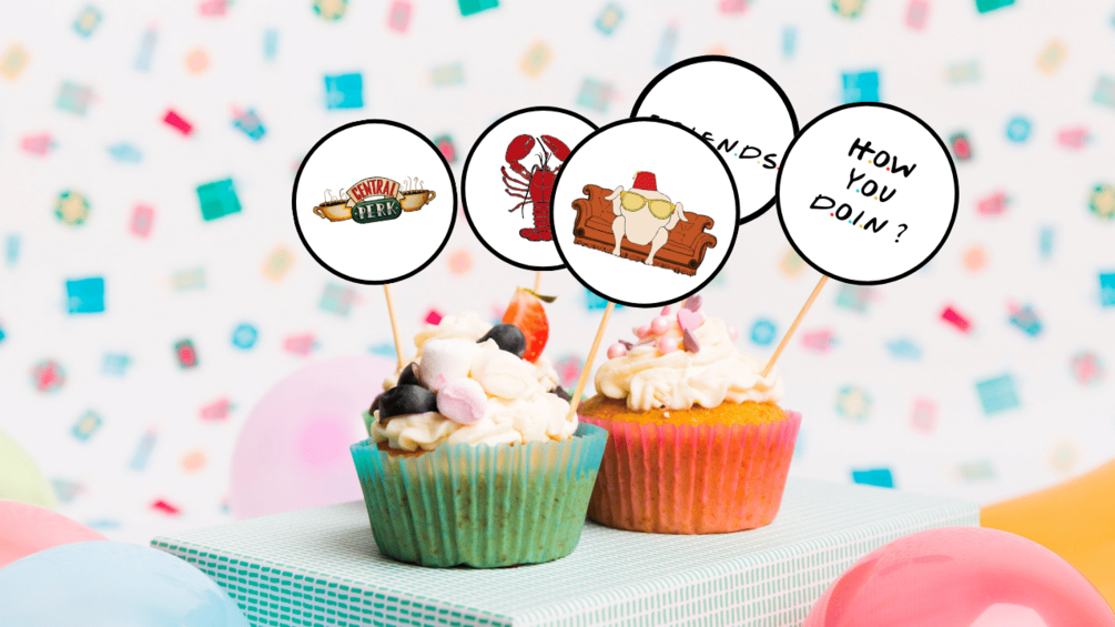 Personalizable decorations and party elements inspired by Friends