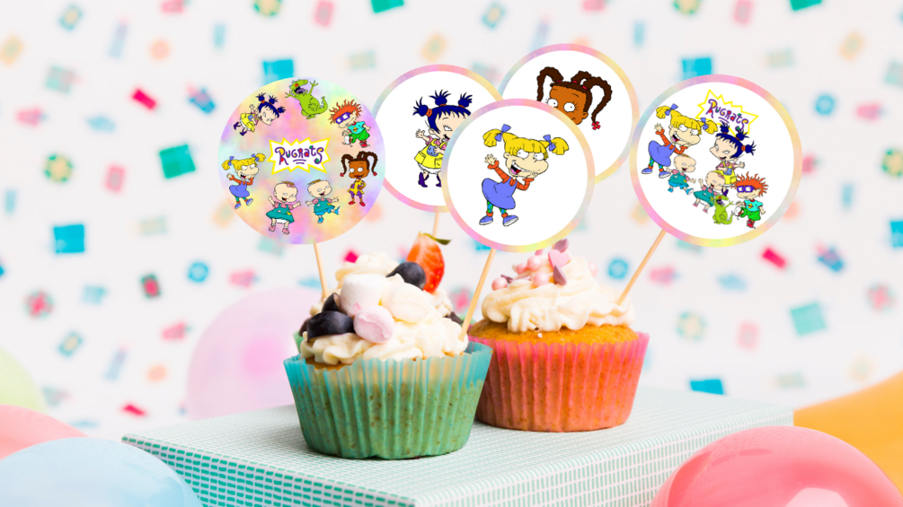 - Personalizable decorations and party elements featuring the Rugrats characters
