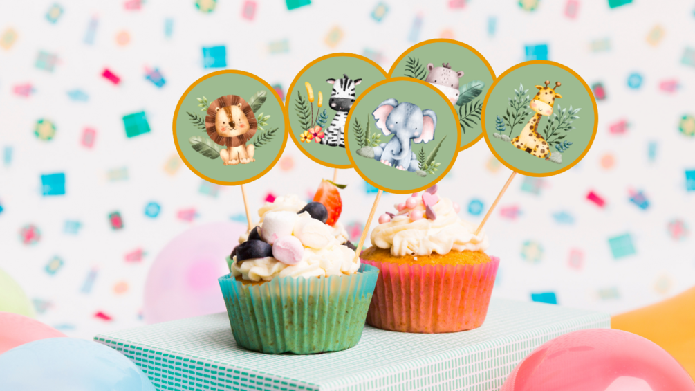 - Personalizable decorations and party elements in a fun safari theme