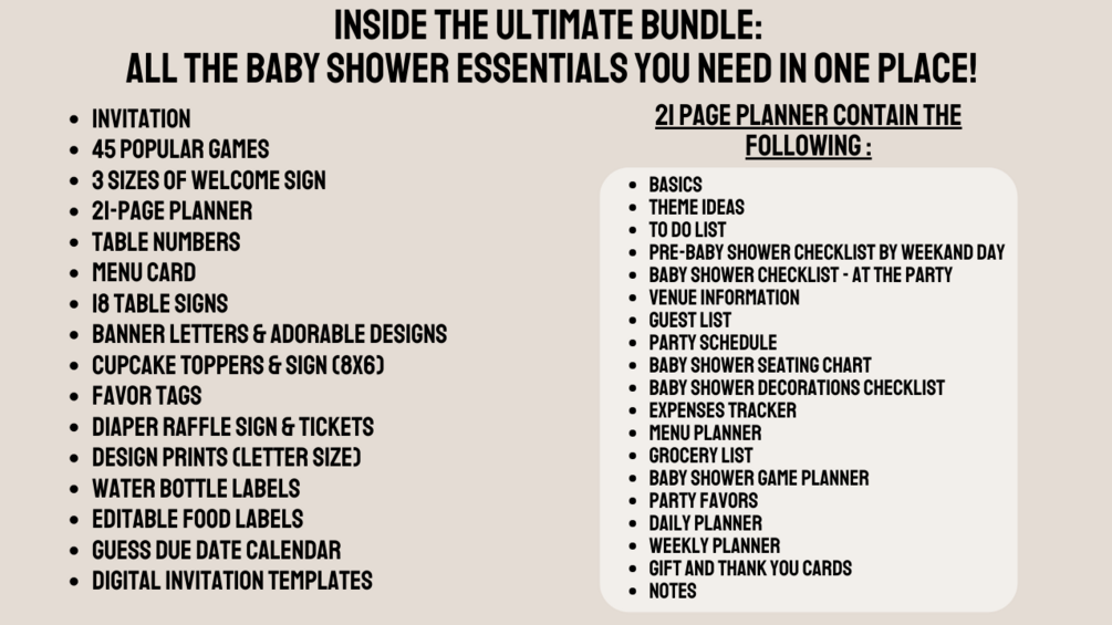 - Complete bundle for an effortless, DIY baby shower