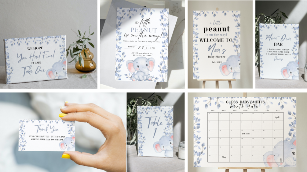 🐘 Adorable Designs: Our lovely and heartwarming blue elephant-themed templates will set the tone for an event filled with joy and excitement.